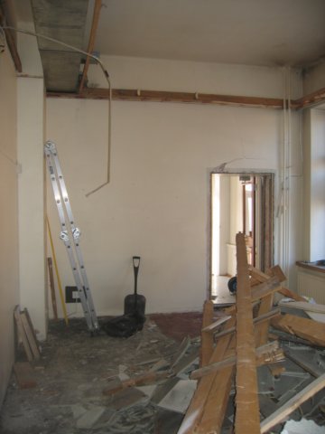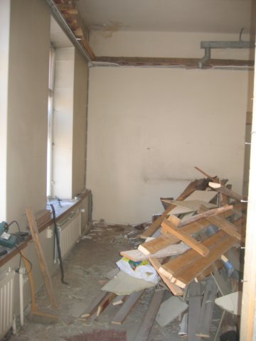 Johtokunnanhuoneen kaakkoisnurkan alkutilanne kesällä 2006.
