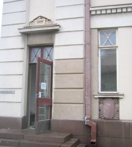 Vasemmanpuoleisesta ikkunasta näkyy Koulukadun ja Kirkkokadun