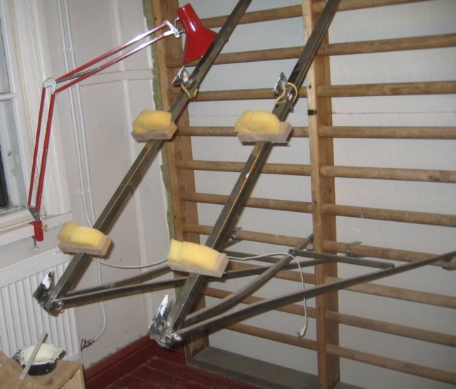 rakennesuunnittelijan laskelmien mukaan ja kiilojen avulla pingotetaan