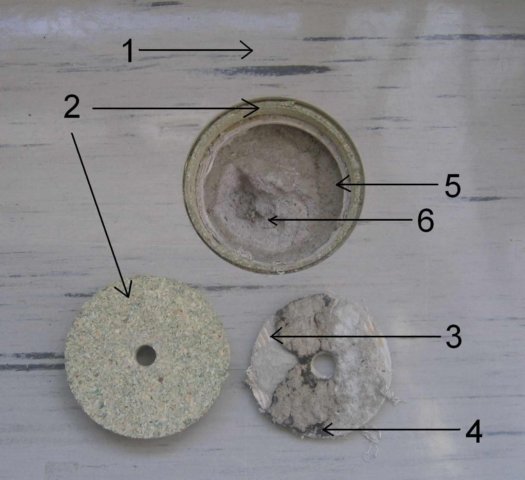 ![]() ![]() Kuva pankkisalin lattian kerrostumista. Tässä esimerkki pankkisalin länsipuoliskon lattiakerrostumista: 1) harmaa 30x30 cm muovilaattalattia, jonk alla on rusahtava liima. Tästä laatasta päätettiin 28.9.2006 teettää asbestianalyysi. Analyysi edusti myös pankkisalin eteisen, johtokunnanhuoneen, pankkisalin itäpuoliston ja henkilökunnan eteisen eteläpuoliskon vastaavia lattiakerrostumia. Asbestianalyysissa asbestia ei löytynyt. 2) vihertävä lastulevy, jonk alla ohuena kerroksena rusahtavaa liimaa. 3) kellertävä naarmuuntunut linoleumimatto, jonka allavaalanruskeaa hammaslastalla (3 hammasta/cm) levitettyä liimaa ja tämän alla harmaa sementtimäinen tasoite 4) Musta kova tasoitteen tapainen kerros oli lähtökohtaisesti asbestisuspekti, mutta mutta 28.9.2006 teetetyn analysin perusteella oli kuitenkin asbetista vapaata. 5) tasoite 6) betoni. Pankkisalin itäpuoliskon mäntyponttilautalattian ja muidenkin muoneiden lattioiden kerrostumien inventointi löytyy täältä. Kuvia lattiaremontin edistymisestä kerätään tänne. |