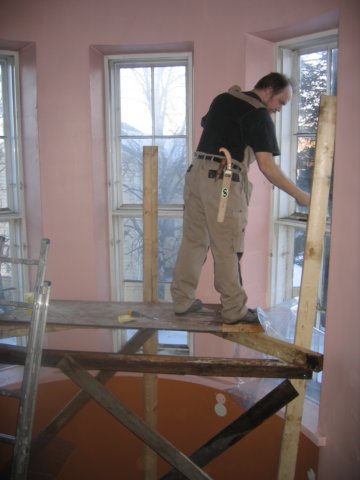 ensimmäisenä rekonstruoidaan yläkerran kaksion huoneiden