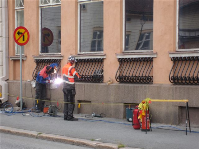 lounaisnurkan ulkoportaiden metallilyhty, joka soodapuhallettiin,