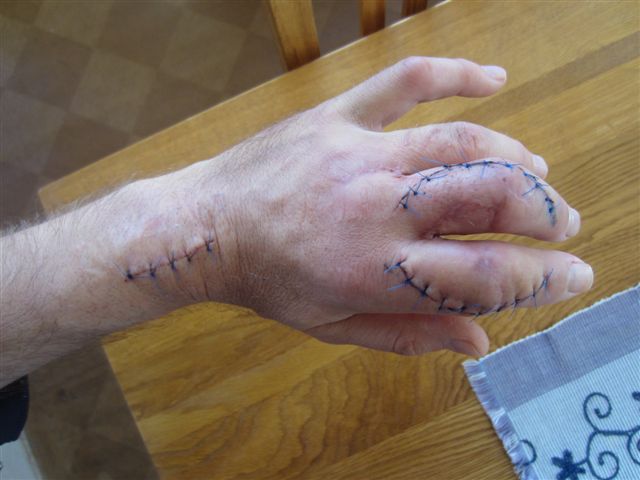 valmistellessa toimeksiantajalle sattui vakava työtapaturma![]() Ranteesat on otettu luuta etusormen tyvinivelen lopullista jäykistämistä varten. Etu- ja keskisormen muut nivelet ja rystyset tulevat jäämään hyvin jäykiksi. Keskisormeen saatetaan joutua myöhemmin laittamaan keinonivel. Myöhemmin tähän lisätään linkki, jossa kerrotaan lisää tietoa tästä yksittäisestä työtapaturmista ja sirkkelitapaturmista yleensä. |