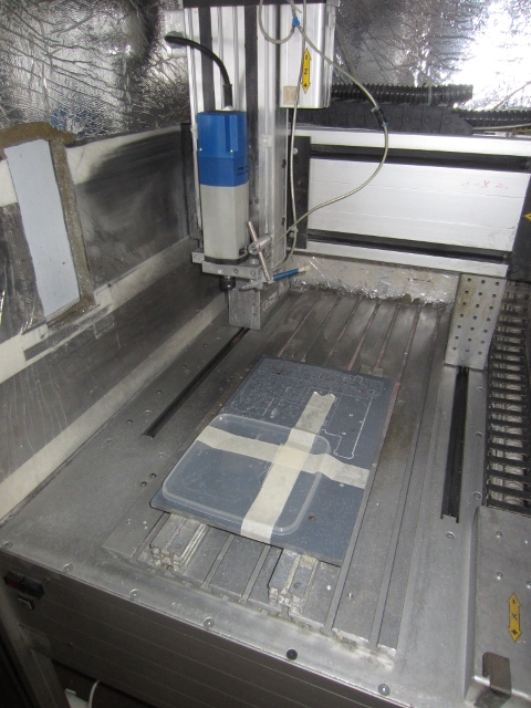 muoviseen koeaihioon, seuraavaksi jyrsintä tehdään