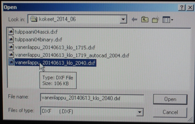 - Klikkaa SketchUpilla juuri tallettamasi dxf-tiedostoa → Open →