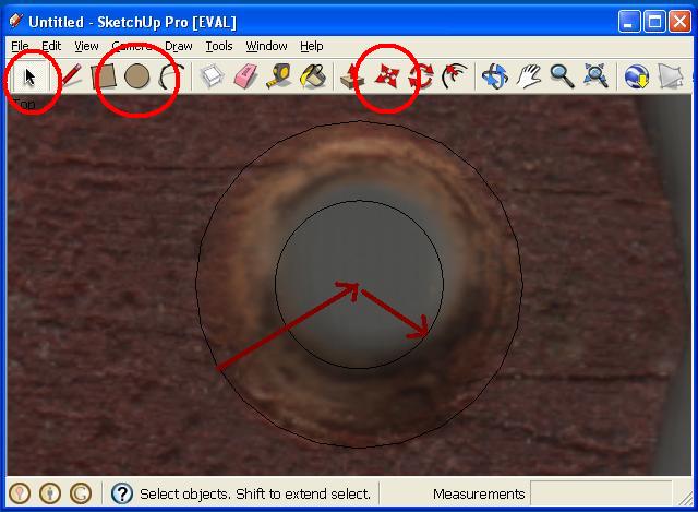 Aloitamme ruuvin reiän ympyrästä. Koska skannerin kuva