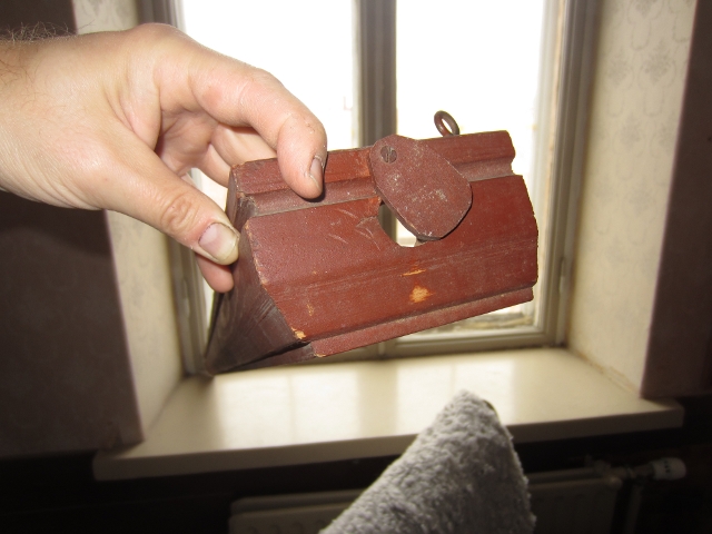 Alkuperäinen/varhainen puinen verholauta kuvassa vinossa asennossa